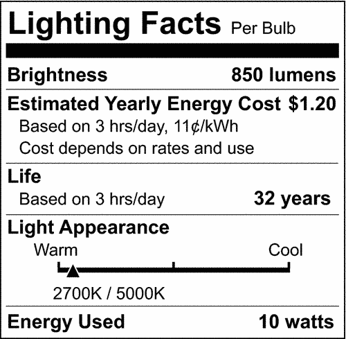 | CCT (Kelvin) | 2700K-5000K |