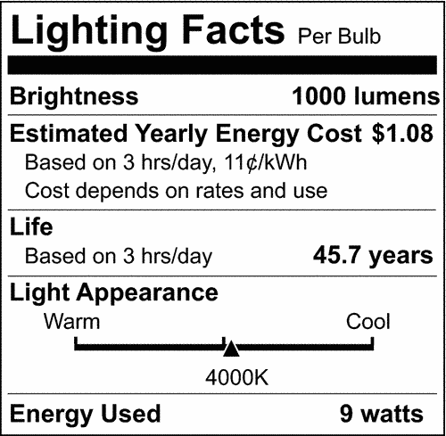| Watts | 9W |